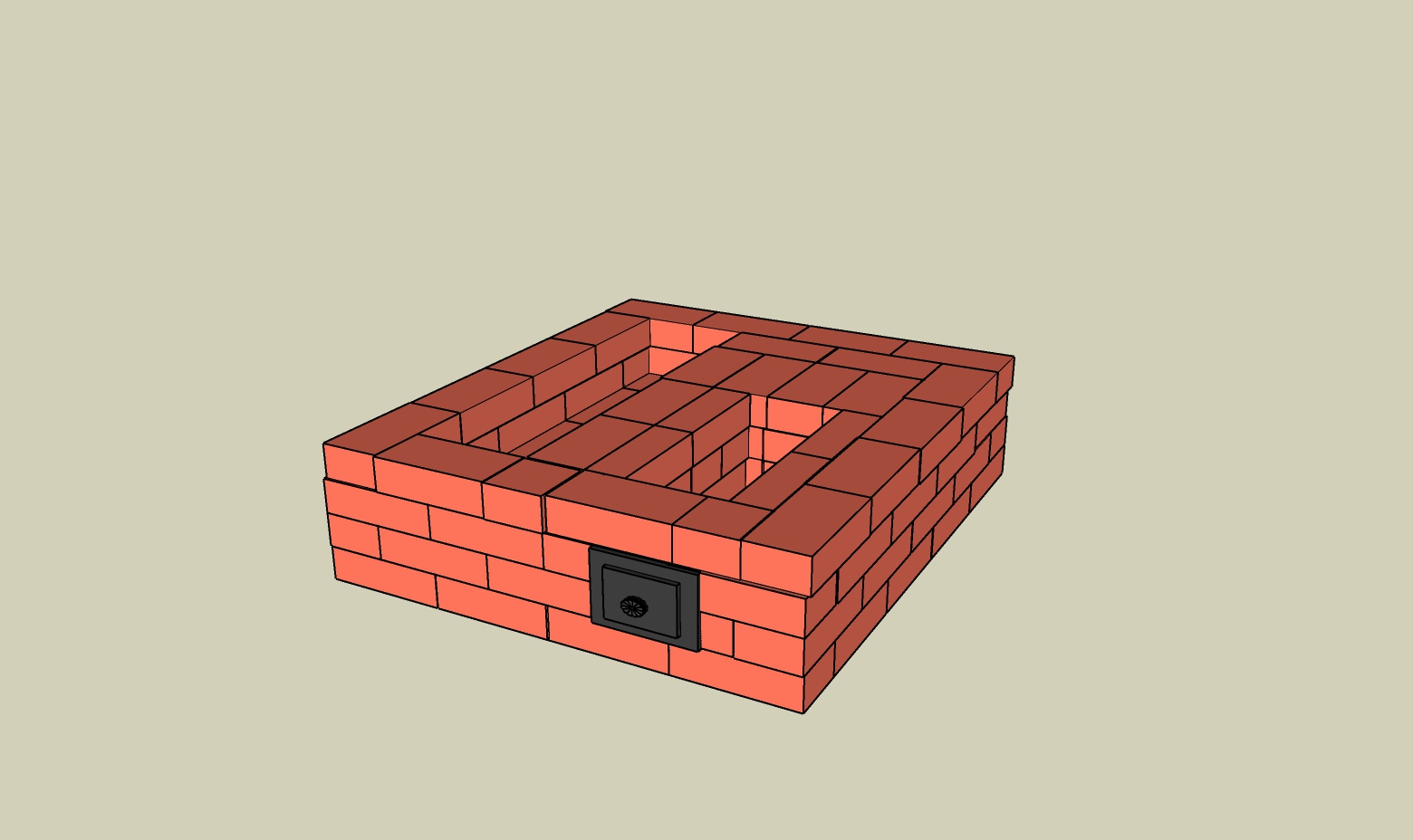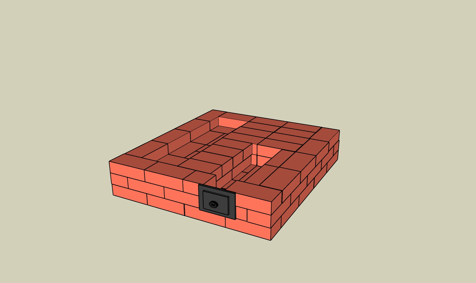 Посмотрел в реале на то что будет получаться. На сухую кирпичики сложить намного быстрее чем в программе получается. Маловато мне показалась топка. Да еще если шамот добавить. Надо сдвинуть стенку топка-канал. Наверное на высоту шамота. Двух кирпичиков.