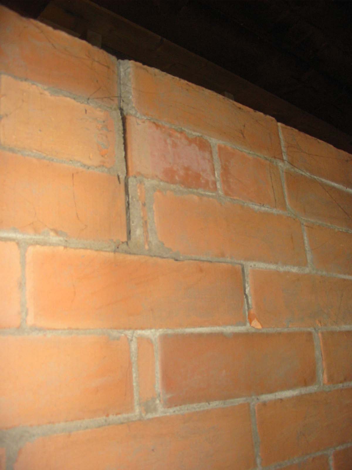 | Вид свода топки. Куски кирпича откололись уже давно. А вот шов раскрылся похоже только после потопа. Такое впечатление, что кирпичи просели |
