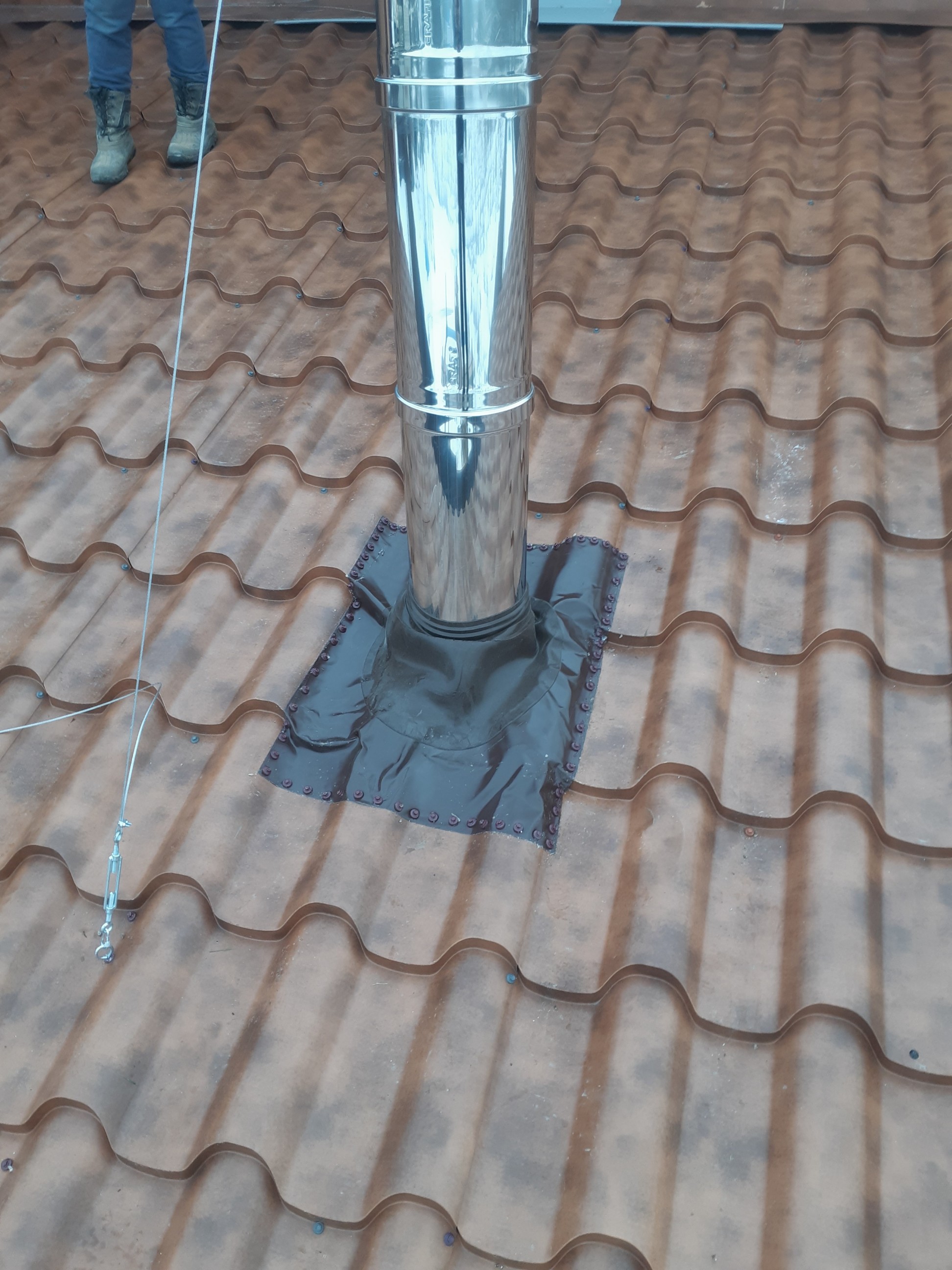 Здравствуйте! Дымоход заказали, через неделю будет готов. Но вот не знаю какую растяжку сделать, тросы думаю не очень подойдут (крыша мансардная и только в 2 местах есть возможность закрепить), хотелось бы жёсткую, но в наличии нигде нет. Может есть специалисты, которые устанавливали сэндвич-дымоходы с хомутом (хомут есть) под растяжку из подручных материалов? Поделитесь, пожалуйста опытом, из чего можно сделать жёсткую растяжку?