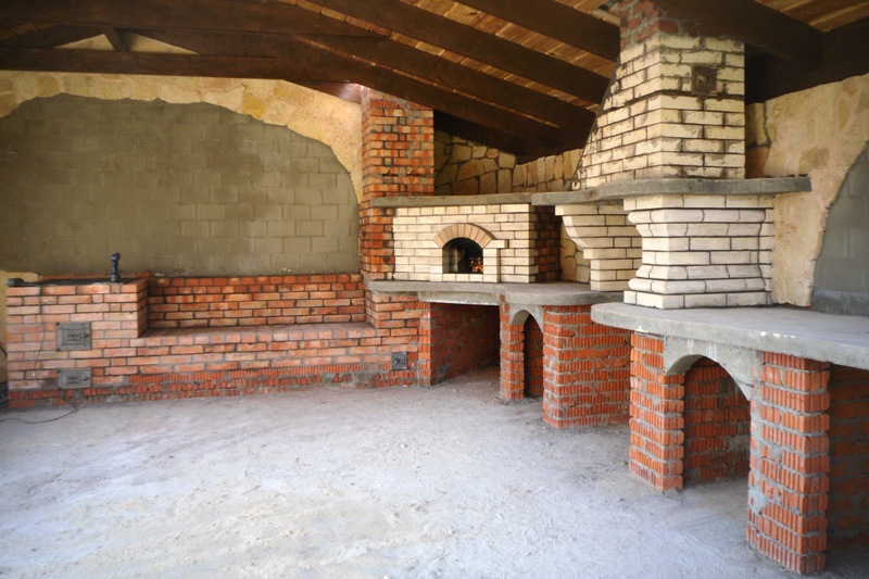 | Справа отдельная ниша под вставляемый тандыр. Опыт негативный, слишком дымило, переделали на гриль. |