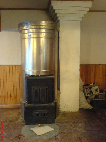 Круглая печь смонтированая в позапрошлом году. Заказчики довольны быстро прогревается и достаточно долго сохранет тепло.