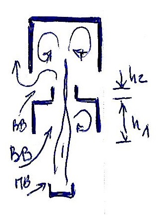 Судя по картинкам, у Вас первый дырявый (проточный) колпак создает тягу (если там все перемешивается и всюду высокая температура) как два райзера с высотами h1 и h2. Но может ли эта тяга 1 Па затянуть в себя "снаряды" угля? Кстати, и на втором этаже дырявый колпак можно было бы заменить на оборотную (противоточную) "масс-ракету", залавливающую, так сказать...