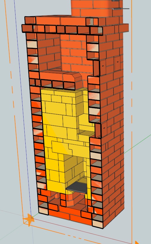 ps: При проектировании тщательно блюду перевязки, это не даёт развалится шамотному ядру даже при "разрыве" по швам.
