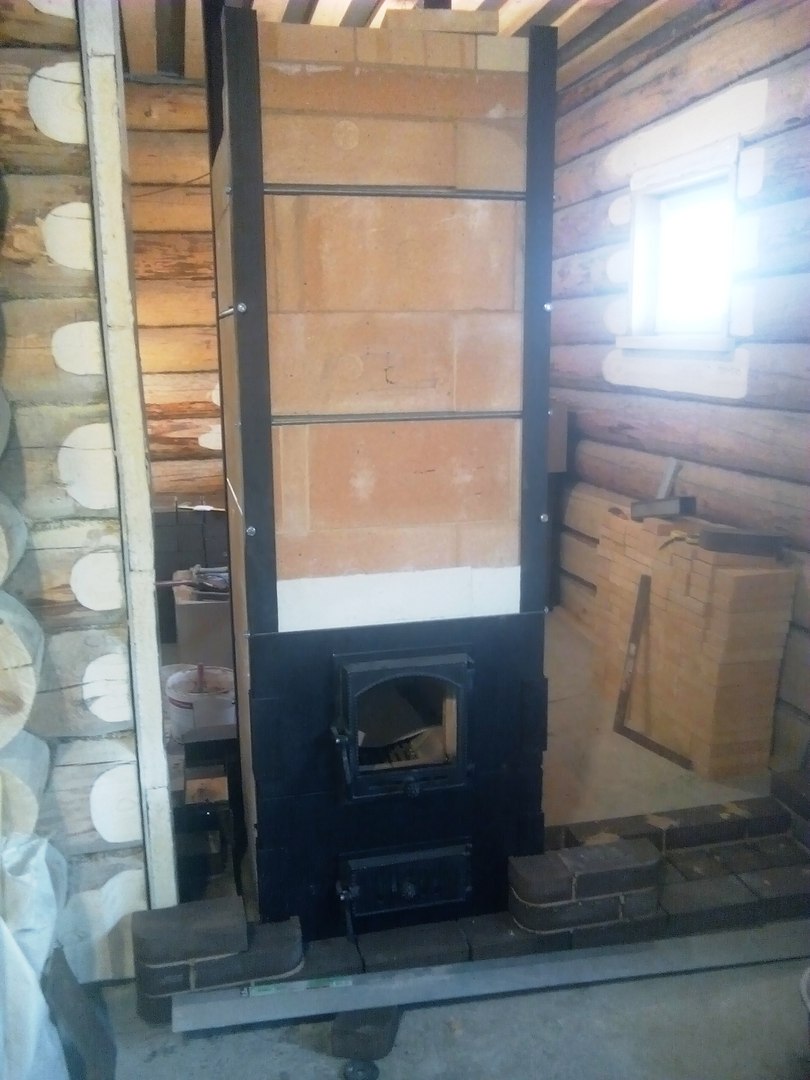 немного внутрянки стандартное шамотное ядро в каркас- бондаж из метал уголков