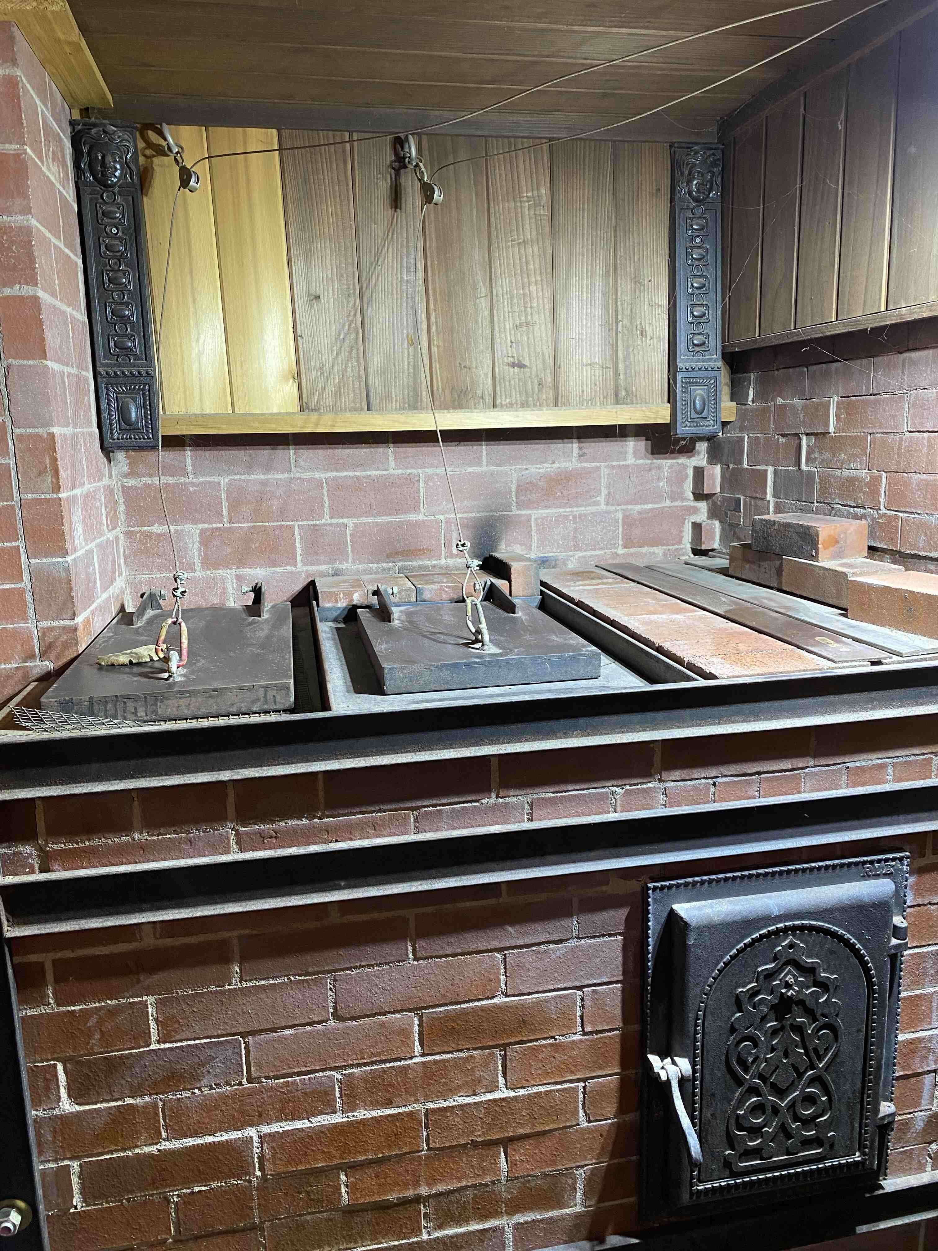Учусь сжимать фото и заодно расскажу о последнем ремонте печи. Это общий вид до ремонта. Слева белая каменка для влажного пара, у черной каменки две дверцы - фронтальная и верхняя.