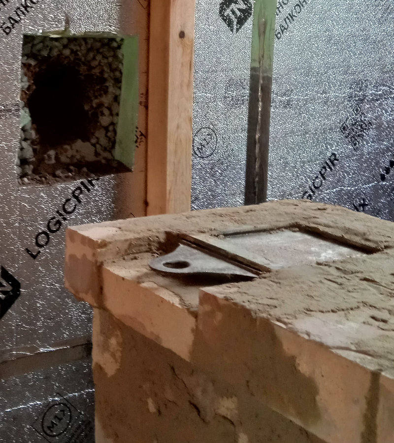 Перекрыл первый колпак и задумался - а правильно ли оформил задвижку летнего хода? проложил каолиновой ватой со всех сторон и замазал сверху, с трех сторон прижмется кирпичами, но с одной - нет.