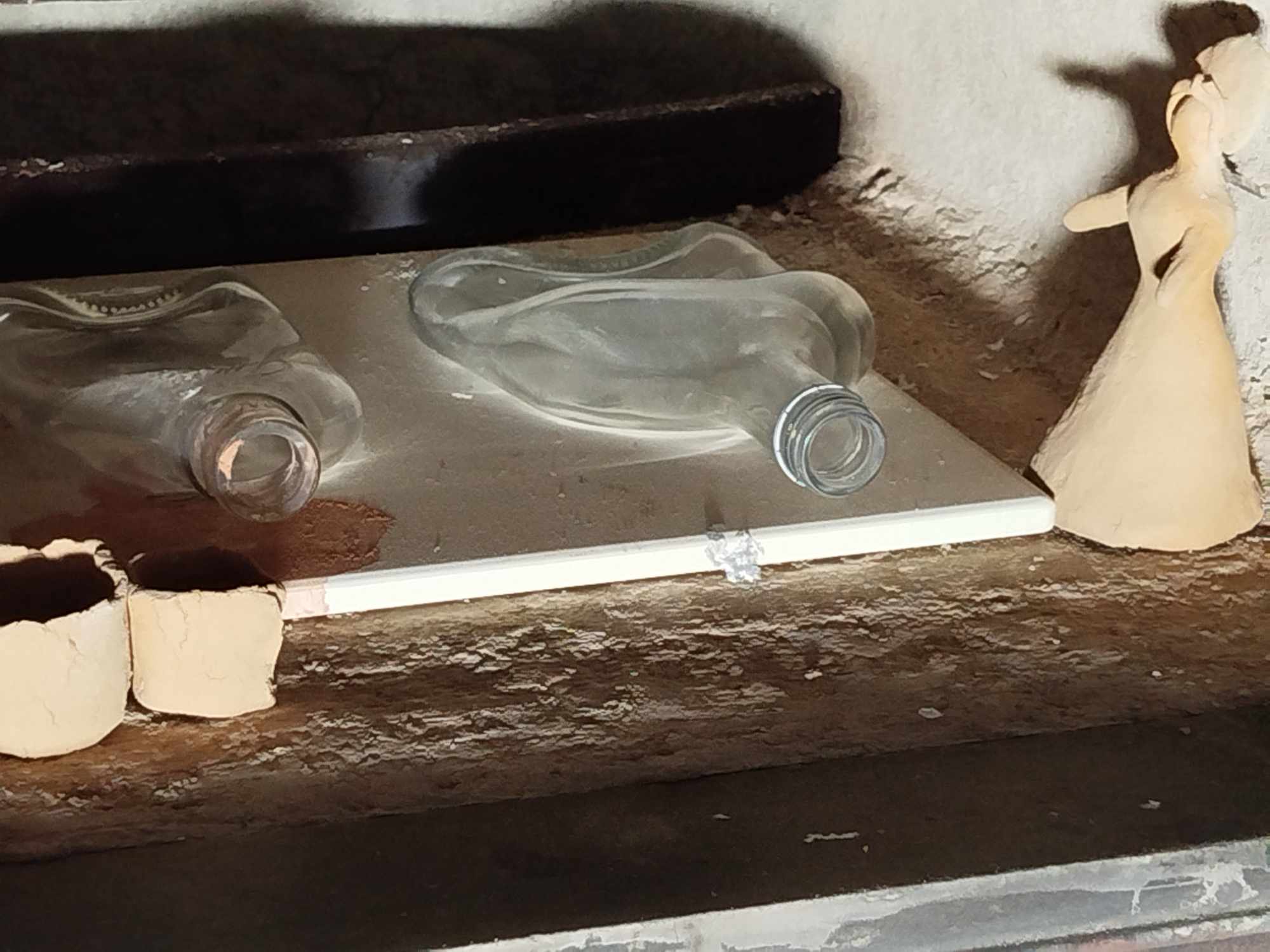 Вчера в варочной печи обжигал подегки слепленные здесь с детьми и моллировал бутылки.