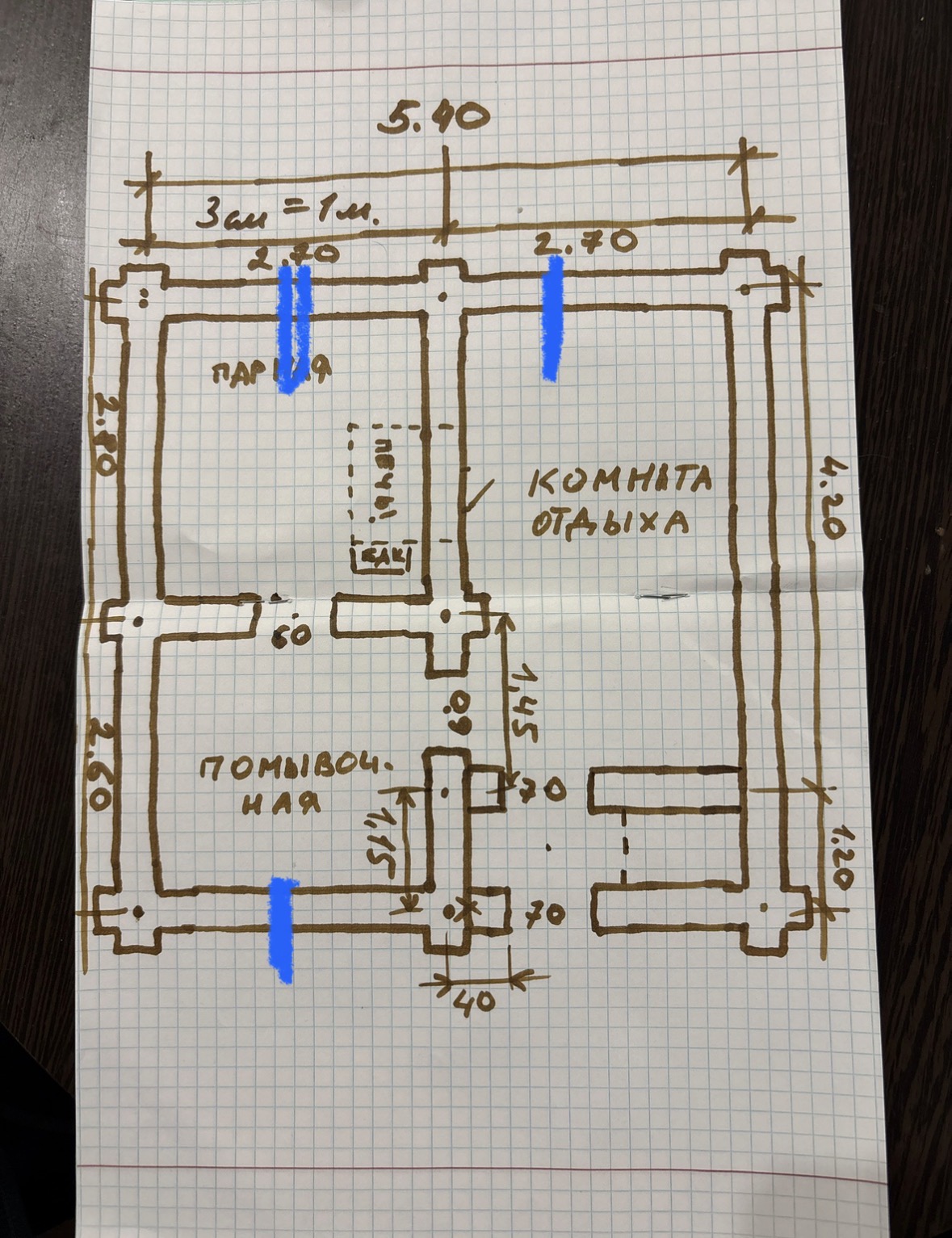 Бревно 25см. Чем дальше, тем больше вопросов. Как правильно с позиционировать печь( планирую строить мотивированную печь Васильева) относительно полоков, двери, стен и т.д? Прилагаю набросок будущей бани. Может куда-то что то передвинуть или ещё чего нибудь.