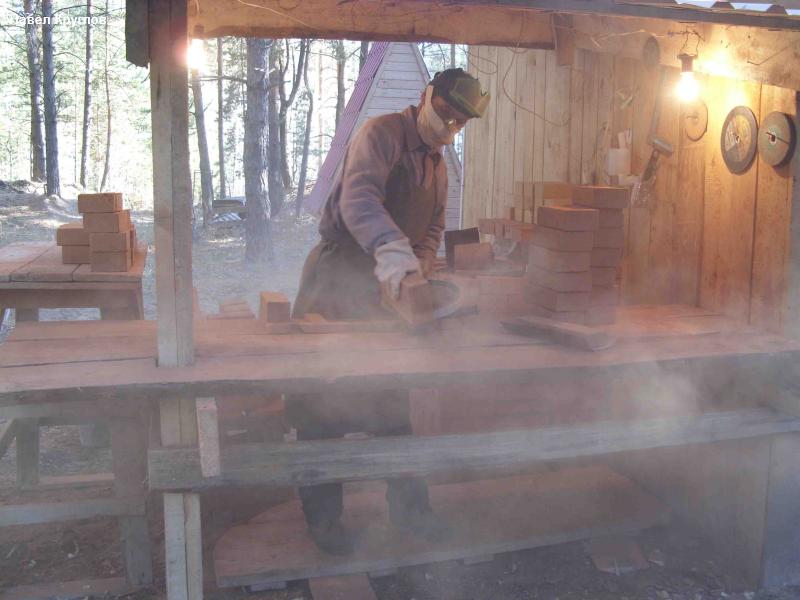 Игорь. Станком не пользуюсь, а надо, особенно дикий камень, резать. Летом КАМАЗ перерезал, но как им резать в зимнее время? Я завтра уезжаю в охотхозяйство печь-каменку строить, отделка внешней стороны резным кирпичом, а уже морозы, помещения там теплого нет, так что буду резать и шлифовать болгаркой.