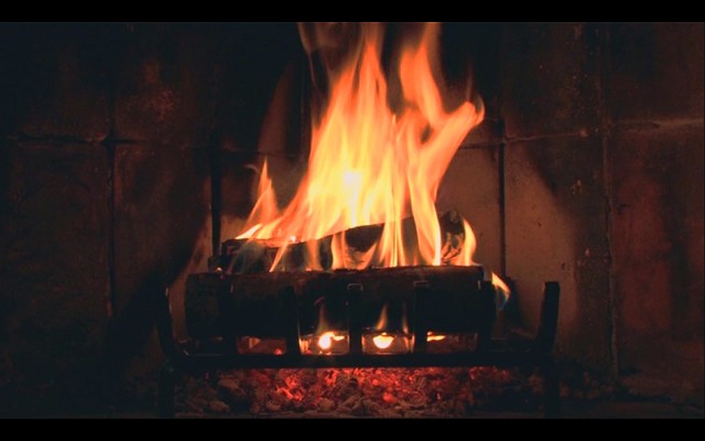 Это реальное, снятое на камеру с высоким разрешением, изображение горящих в камине дров. Звуковой фон - потрескивание горящих дров.
