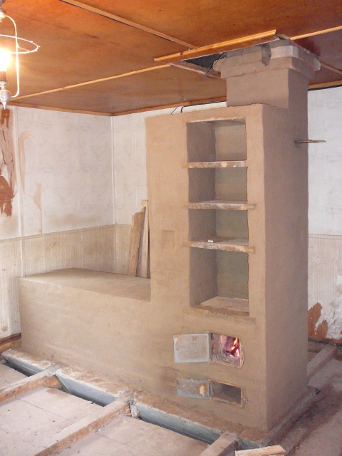 Кстати высушил долго и нудно, но при первой-же топке с закрытой дверцей пошли трещины. Распространение их похоже идет до сих пор, ибо дальний угол лежанки потрескался позже.