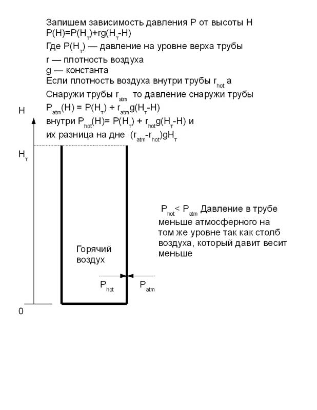 Зачем нужен этот пример с закрытой снизу трубой. Истекает горячий воздух засчет механизма выравнивания давлений. Причем тут тяга?