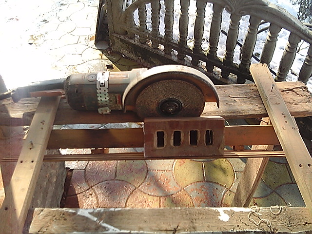 Чтобы не царапать кирпичом краску в ванне с водой, нижняя часто кирпича временно обматывается тканью в 1 слой, что сохраняет краску, но это будет работать, только если в ванне на дне мало напиленного осадка. На плиткорезе Norton TT 200 EM эта операция делается легко и совершенно непринуждённо. Можно, конечно, такой пропил сделать и болгаркой, но он не получается таким ровным и аккуратным, как на плиткорезе или на камнерезном станке. Речь идёт о случае, когда болгарку держим руками. Если же склепать примитивный станок из дерева и закрепить в нём болгарку под нужным углом и на требуемую глубину реза, то тогда рез выглядит гораздо лучше.