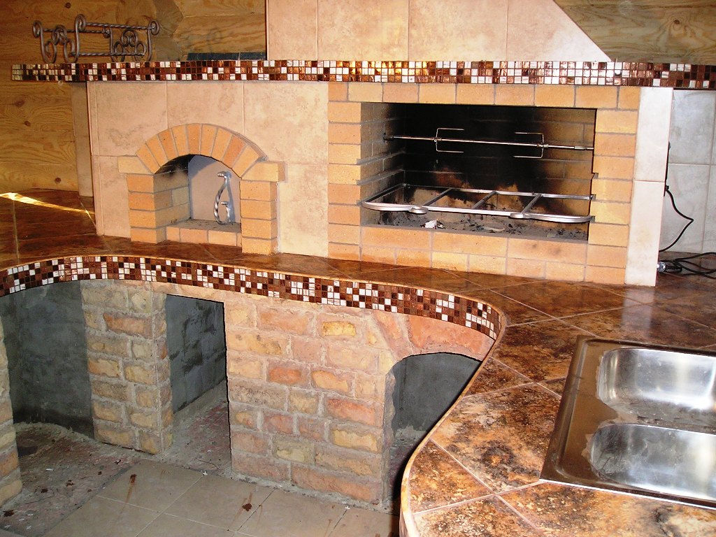 Для примера так у меня оформлен гриль над варочной печью. Те. на варочной плите можно разжечь костёр и жарить шашлык. А варочная печь является в двнном случае топкой для лежанки.