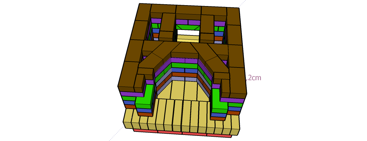 В рядах 7-24 в косых стенках камина в порядовке изображен элемент, раскрашенный как кирпич и длиннее рядового кирпича в 1,5 раза.