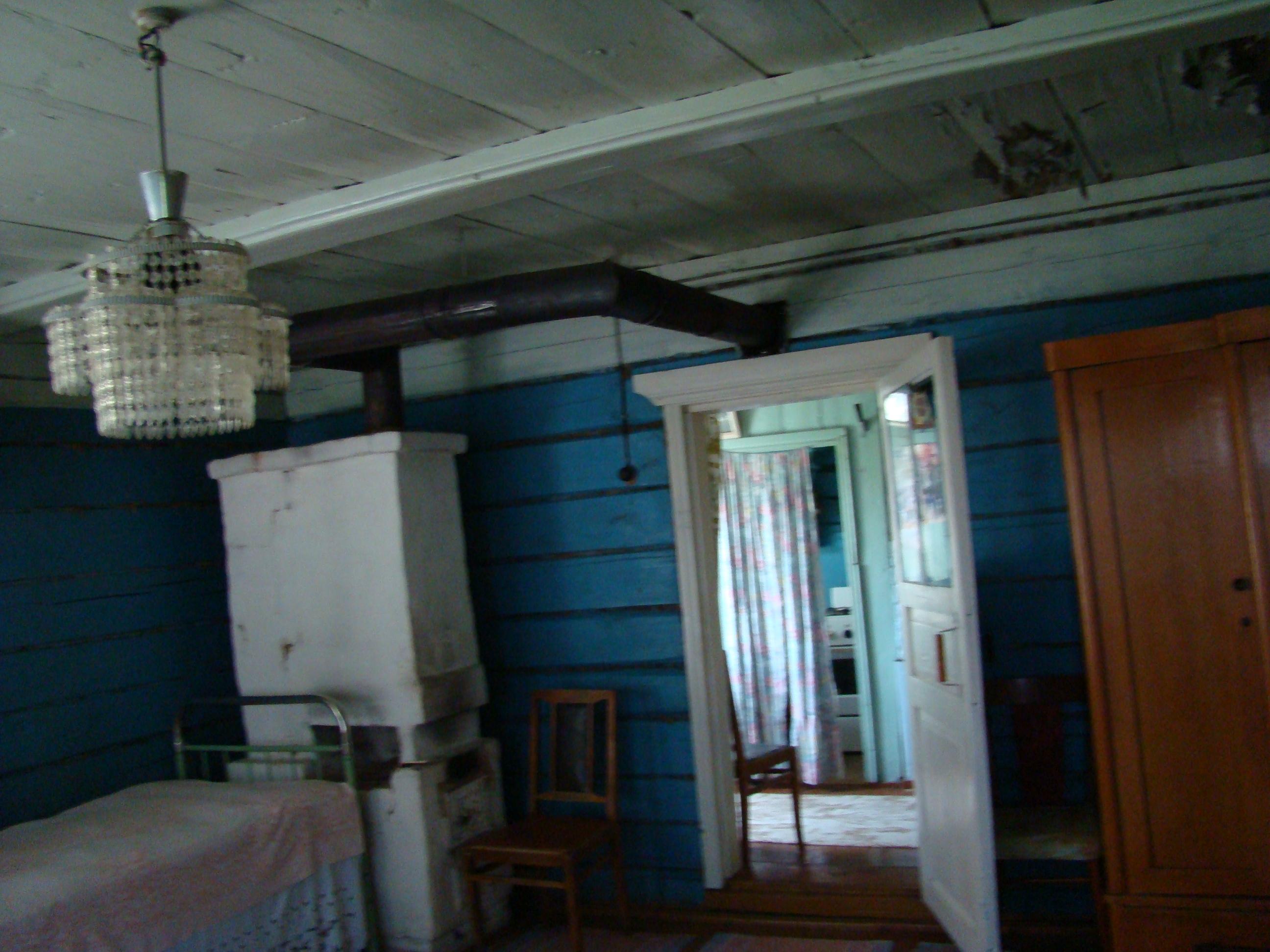 Дымоход из обычного кровельного железа(0,5 или 0,7?),разборный,бывшие хозяева чистили его перед началом отопит. cезона каждый год.Дому 48 лет.Отверстие в стене ,где проходит дымоход, выложено, вродебы, минватой.