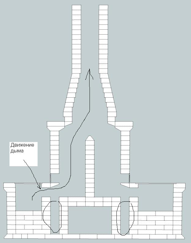 В принципе, они и не должны работать, их можно было просто заложить сверх или забутить, но по моему, они конструкции нисколько не мешают. Со временем, когда-то заполнятся золой, ну и ладно. На работоспособность это не должно повлиять. Дым-то идёт напрямую (показан стрелочкой). Или я не прав?