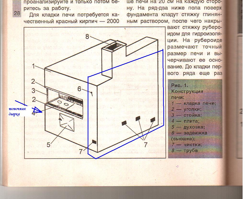 Чистить надо весь отопительный щиток - обвел синим - то есть все части печи которые не относятся к собственно к "русской ", к хлебной