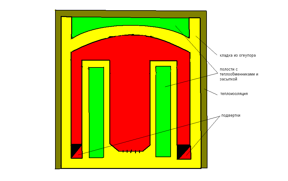 Схема очень интересная, но не разорвёт ли кирпичную кладку на огнеупорном растворе расширение металла стального регистра, вокруг которого сделана засыпка?