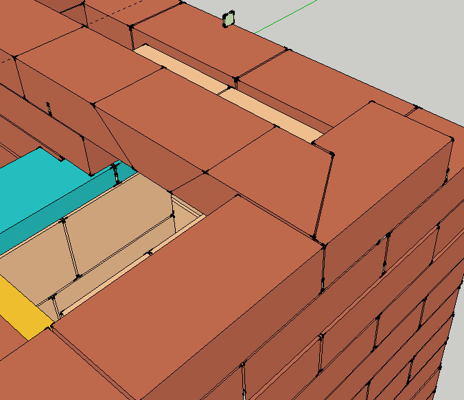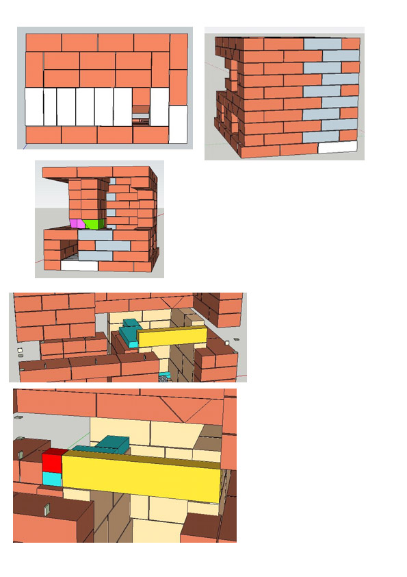 Я оставила щель под голубым кирпичиком (перекрывающим перегородку и футеровку), и большой желтенький перекрывает щель между футеровкой и перегородку. Если я его подвину до угла, придется «лепить» кусочек, который наверно плохо будет держаться, только за счет скошенной добавки…