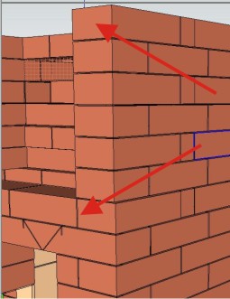 И еще один момент в том что получается мне не нравится. Я хочу увеличить высоту над плитой до 6 рядов, но с дополнительным рядом в топке под боковую стенку, правую, там где стрелка идет кирпич без перевязки и перекрытие без перевязки, может это не смертельно или нужно перерисовывать?