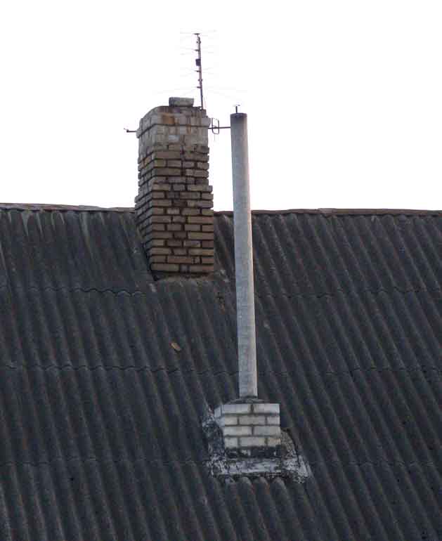 Изображение - 3 Нижняя труба построена лет 8 назад для отопительно-варочной печи. В основу из силикатного кирпича вмонтирована асбоцементная труба диаметром 100 мм, неутепленная. В процессе эксплуатации проблем не выявлено.