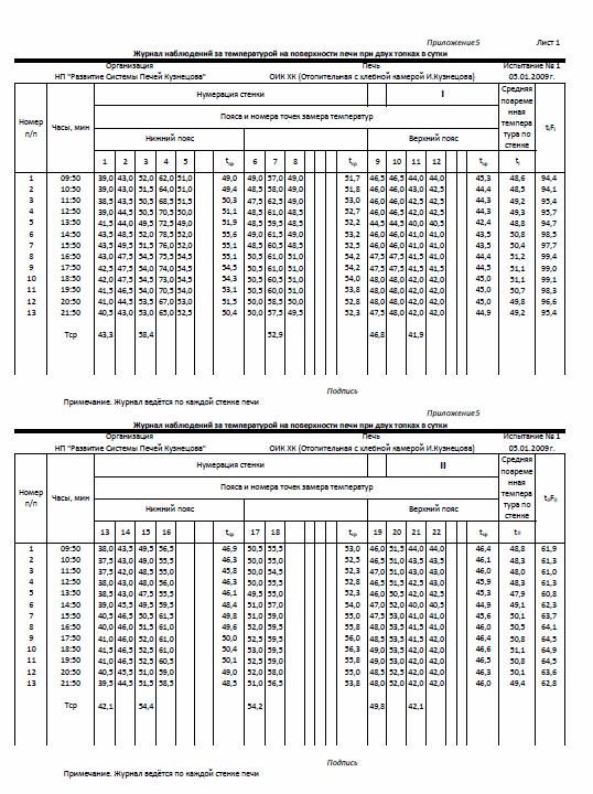 выкладываю сканы отчета по испытаниям печи