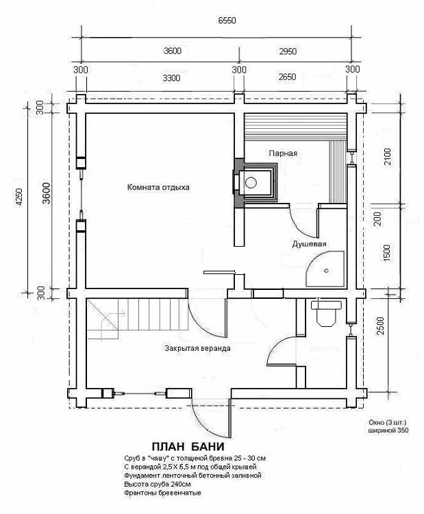 Сруб 6,7х6,5 бревно 25-30мм. фундамент ленточный, высота до конька приблизительно 5 метров, печь на май-июнь 2011. фундамент под печь еще не сделан. Планируется баня гостевой дом, 1-й этаж 2м50см. в чистом виде, 2-й этаж (мансарда утепленная, зимний вариант) 2м40см. в чистом. Хотелось бы печь для отапливания всего дома с камином либо еще какой вариант с открытым огнем.Вариант с подогревом воды.Комната отдыха 12 м.кв., парная 5,5 м.кв., душевая 4 м.кв. Веранда закрытая,фронтоны бревенчатые.Нужно понимание по фундаменту (размер), приблизительная стоимость работ с материалом.