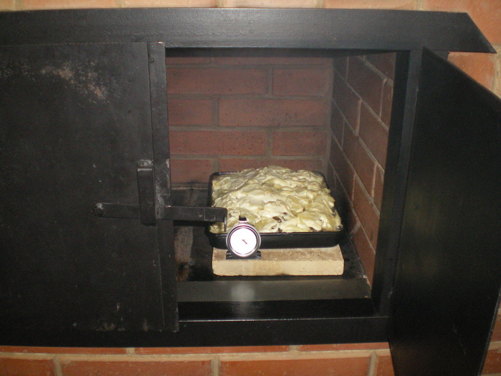 На рождество и дочка решила попробовать в печке сделать курицу с картошкой и ананасом. Температура 130градусов. Пришлось пару часов подождать Вкуснотища. Немного задымили дом, но проветрили - сок на кирпичах горел. Нужна вытяжка в духовке. Но не в трубу, а отдельным каналом лучше. Хотя и проветривание все решило, тепла хватило у печки.