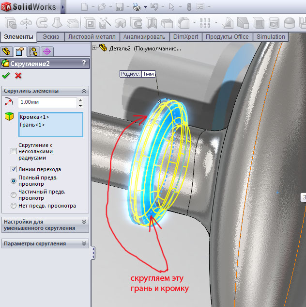 Применим такой способ для детали Ось-заклепка. Напоминаю, что закончили мы на том, что кликнули на заклепке и нажали кнопку контекстного редактирования рис.69.