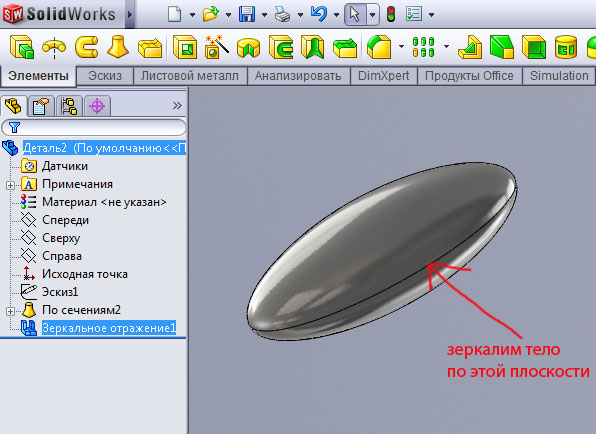 Зеркалим тело чтобы из половинки получить полный элипсоид рис.85.