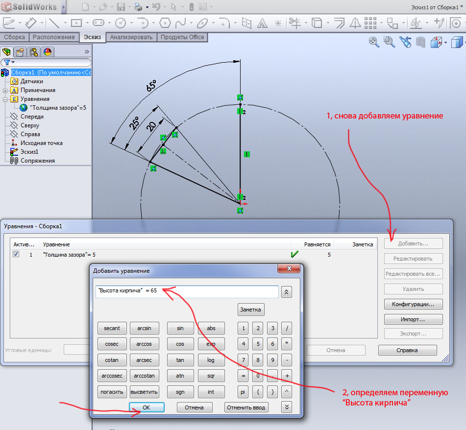 Расставляем связи между размерами эскиза и переменными рис.5-6.