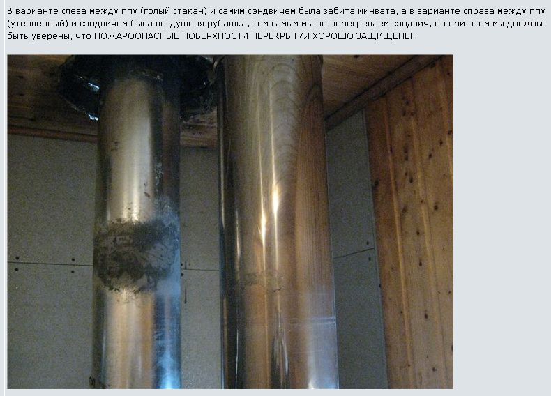 Если проход сэндвича через перекрытие так опасен, то почему бы его не сделать кирпичным по всем правилам? Перевёрнутый конус с основанием 1,5 кирпича с переходником ну и на расширение... крепится к усиленным балкам перекрытия... а на чердаке столбик нужной высоты тоже с переходником