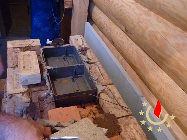 В процессе решения вопроса цветового оформления портала, собираем топливник камина.