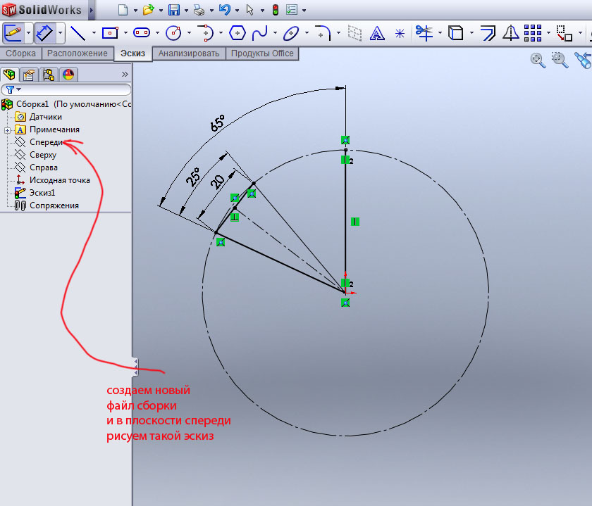 Создаем новый файл сборки и в плоскости спереди русуем эскиз рис.1.