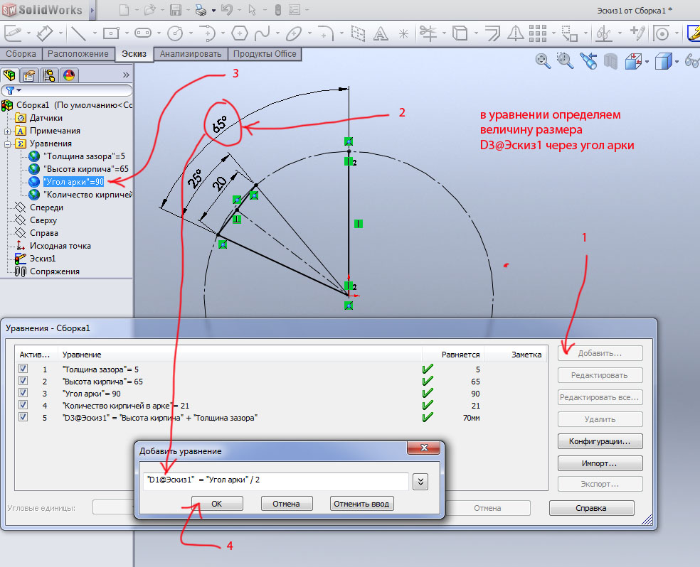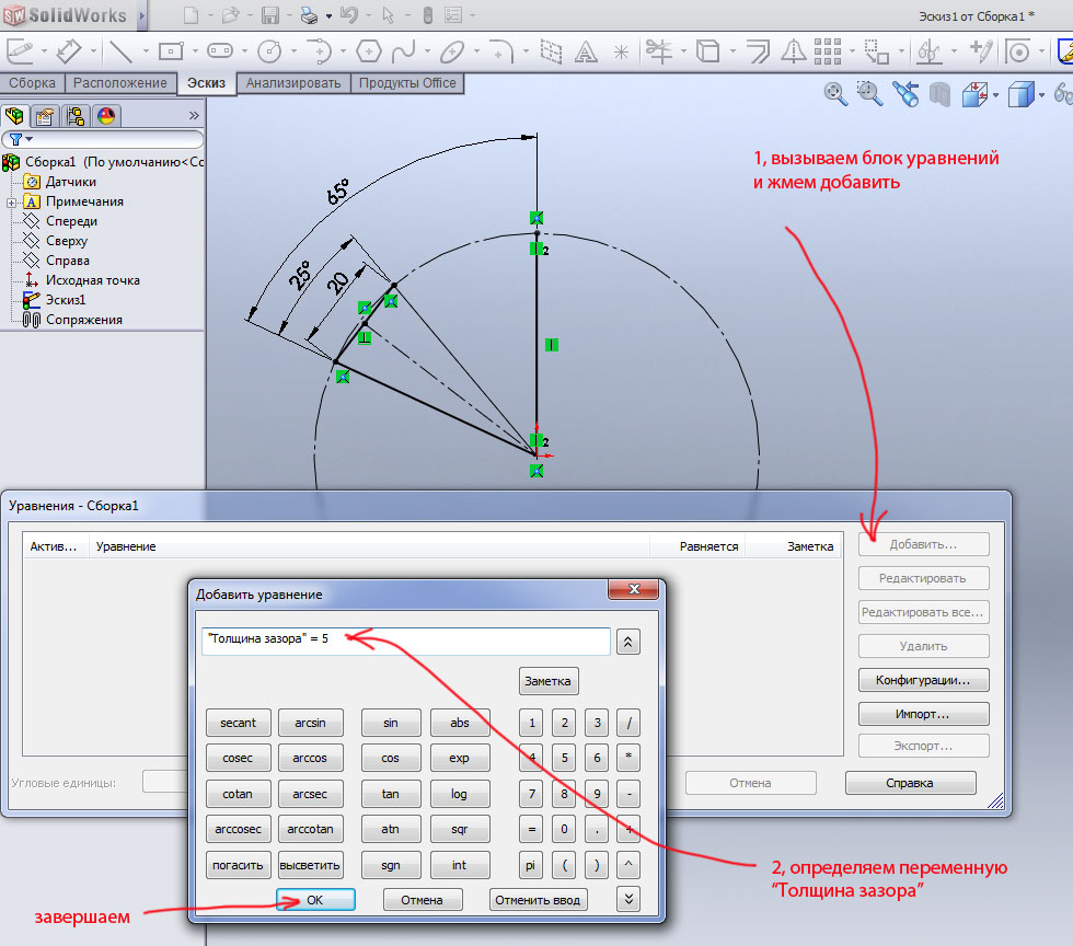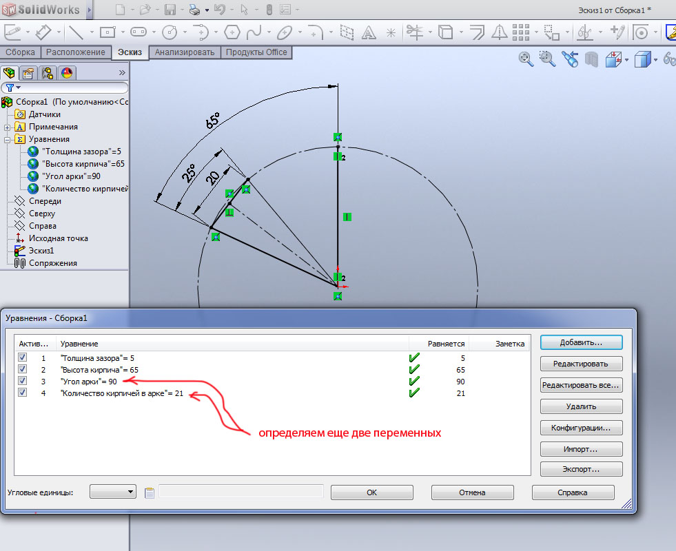 Расставляем связи между размерами эскиза и переменными рис.5-6.