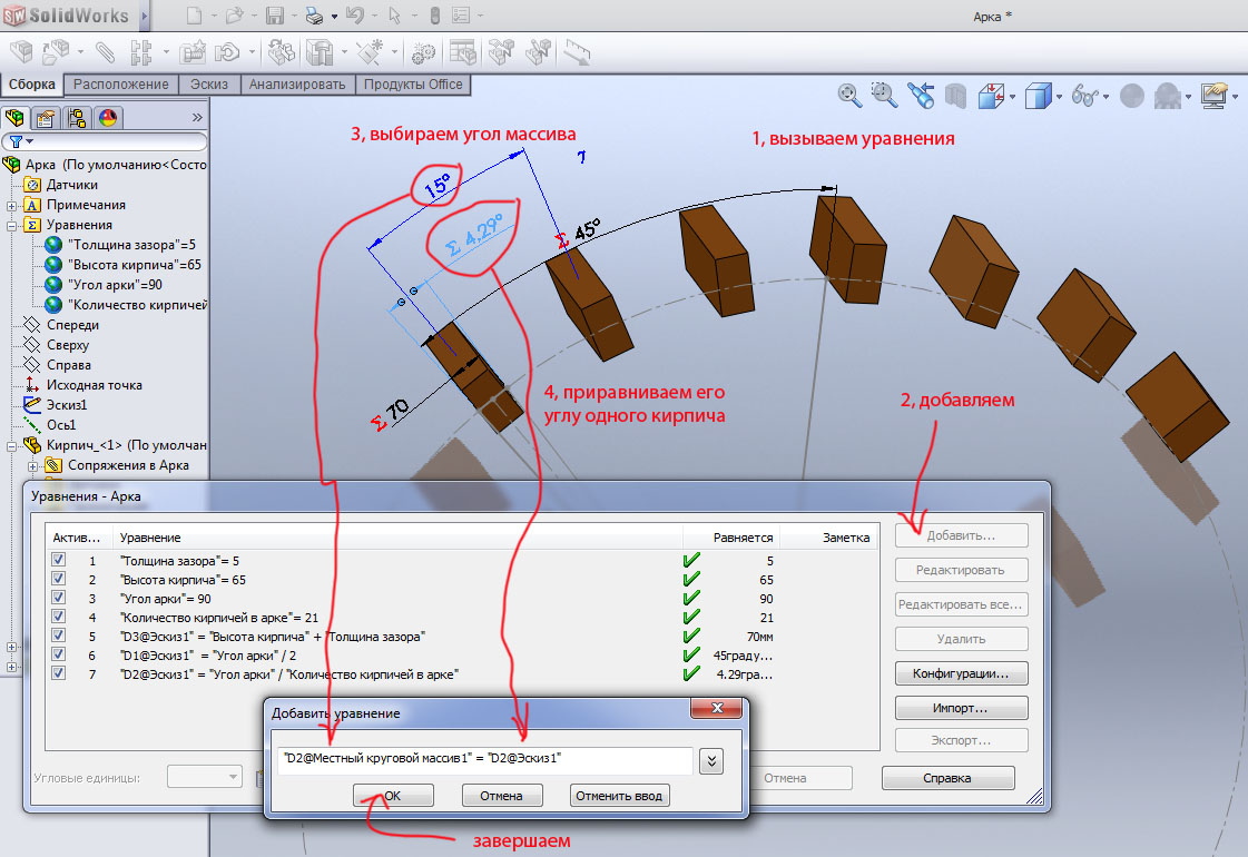 | Можно ли сделать свод русской печи например. Ведь он кладётся в связку. Да и ещё есть нюансы. Наклон например. Я понял что свод или арку строят в солиде один раз. После только изменяют параметры. |