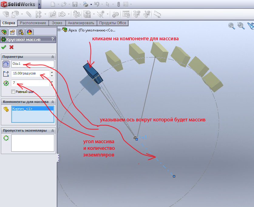 Все, кирпич полностью привязан в эскизу арки рис.17.