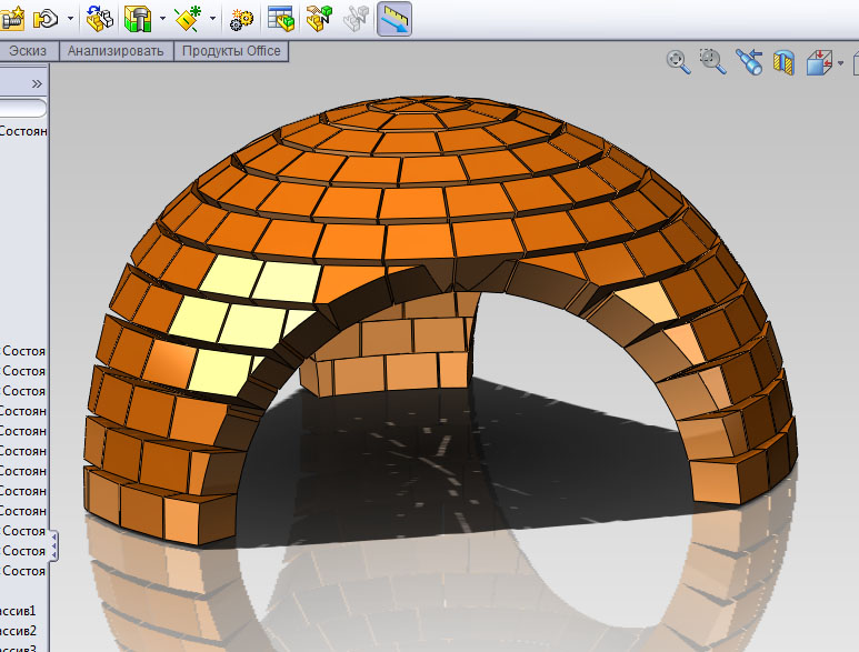 При создании этой сборки я использовал всего одну деталь (файл) Кирпич, но для каждого ряда я создал свою конфигурацию детали Кирпич, поскольку форма и размеры в каждом ряду отличаются.