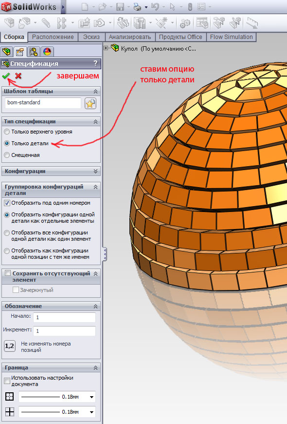 Рассмотрим создание спецификации на примере созданного недавно купола.