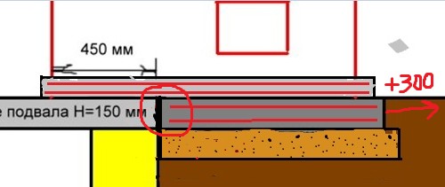 Проблема в том, что дом выстроен давно и неизвестно кем и как. В доме есть подвал с железобетонным перекрытием (при строительстве заливали бетон на опалубку и арматуру) и вот теперь часть печи (левая сторона) должна стать на это перекрытие. См.рисунок.