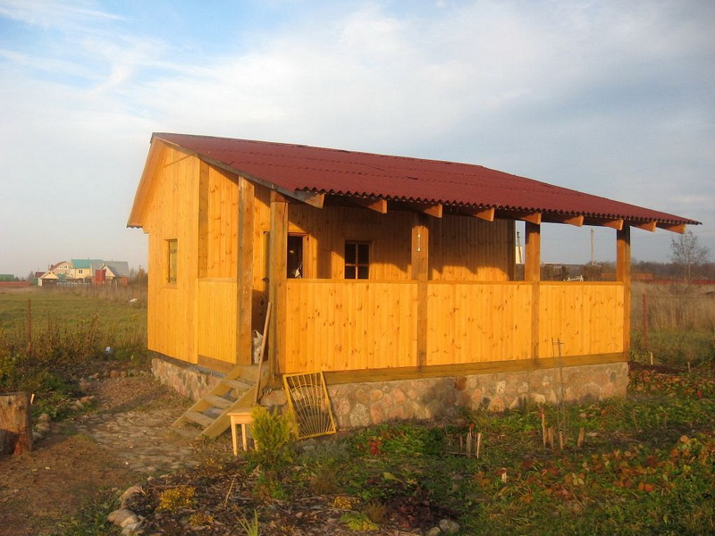 Помимо строящегося дома (см. фото в 1м посте) на участке есть бытовка из бруса, обшитая вагонкой. В ней - нары на 2 места. Но отопления - нет, как нет и электричества. Генератор покупаю на днях.