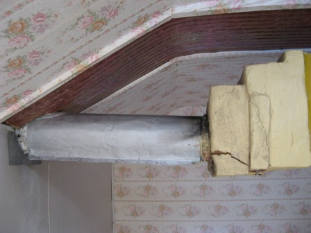 Проблема снизу(сгораемое перекрытие расположено впритык к стальной трубе)