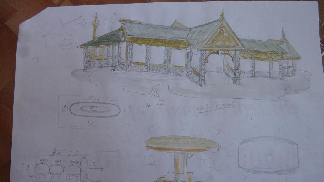 Беседка с барбекю. Размер 7м на 11 м. Сооружение планируется на 40 человек.