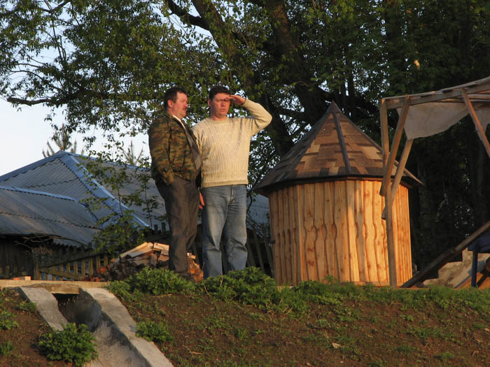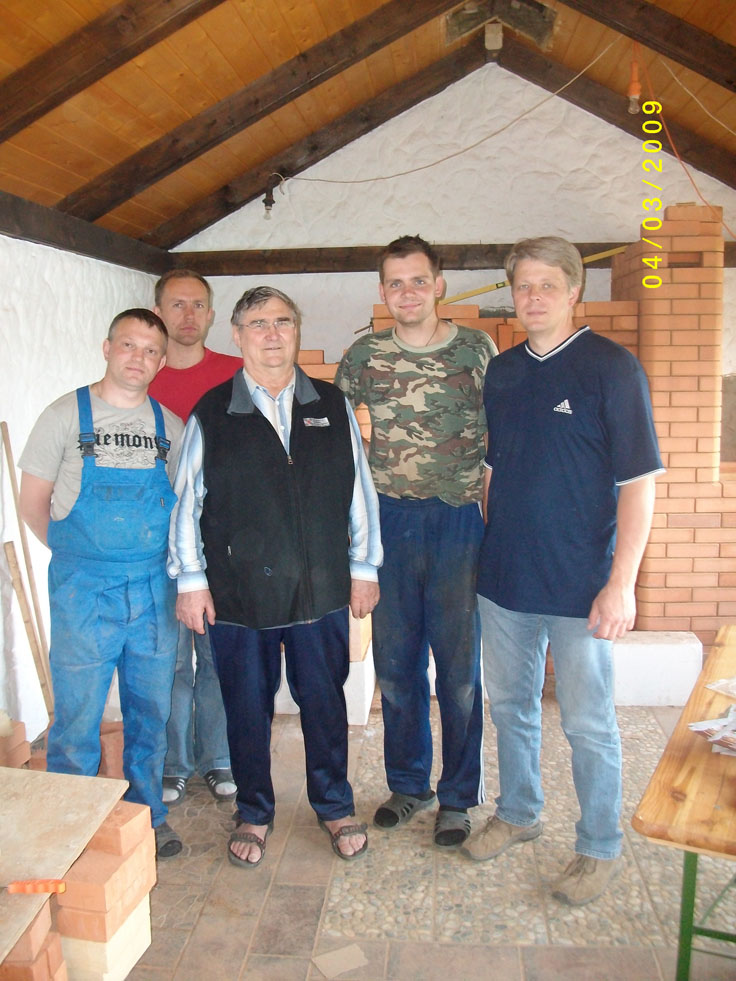 Пока мужчины заняты важными делами .....единственная женщина среди участников семинара осваивает тонкости печного ремесла...и похоже у неё не плохо это получается Smile