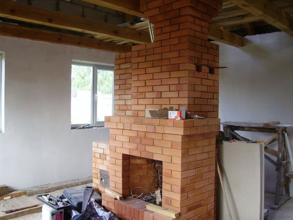 Пригласили местного печника. Он сказал, что нужно меньше книжки читать и сложил такого же вида, но свой вариант. Я ему помогал. Грубо говоря, он расширил колено, которое уходит из топки вниз, и убрал все мудреные ходы в печи так, что осталась за камином практически единая емкость.