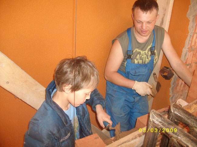 Пока мужчины заняты важными делами .....единственная женщина среди участников семинара осваивает тонкости печного ремесла...и похоже у неё не плохо это получается