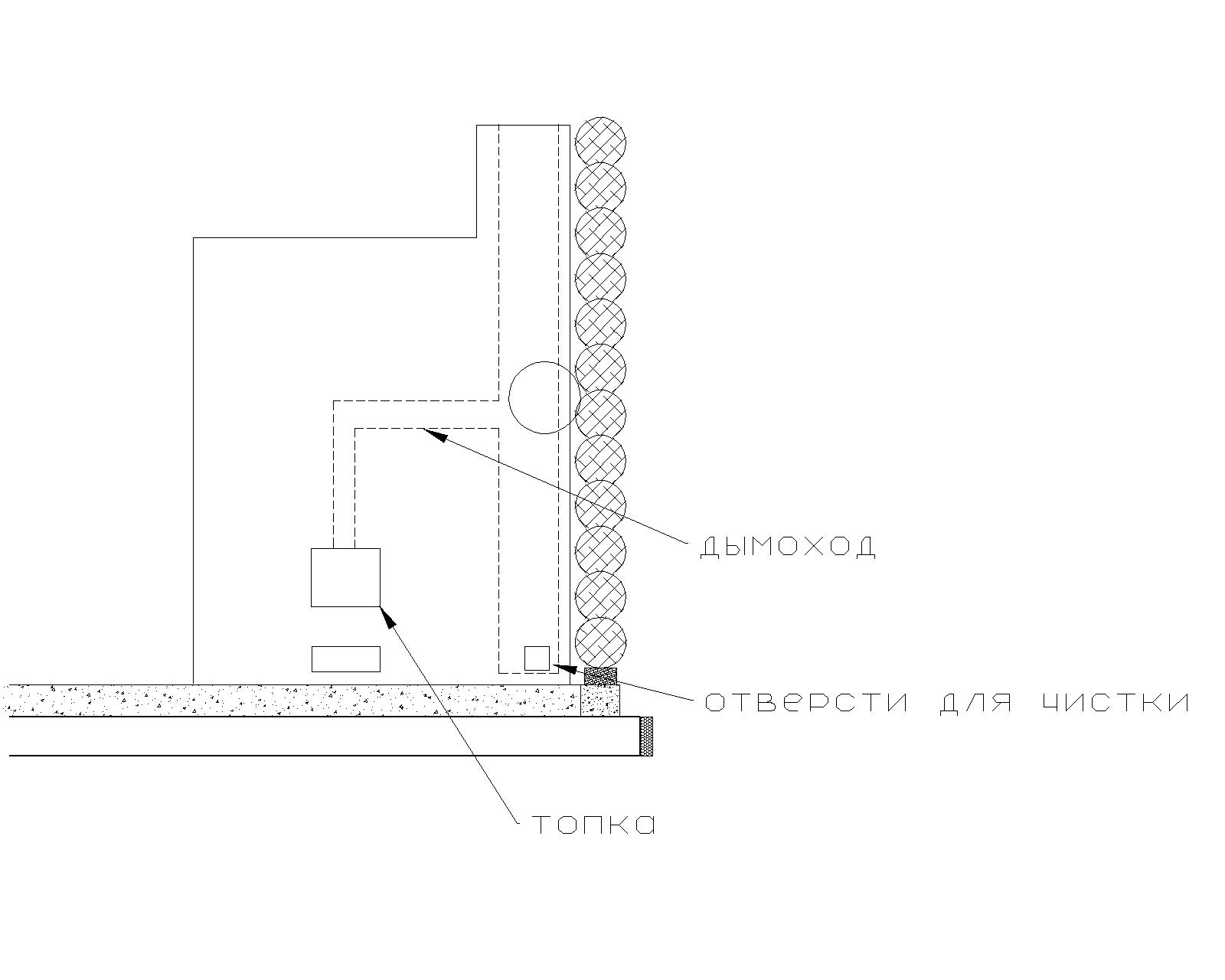 Занялся кладкой печи, решил проложить трубу вдоль стены в пол кирпича,