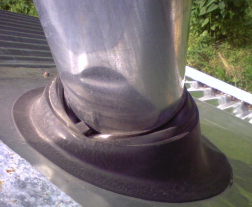 Да, сделал так как на фото,соединение на проволочный хомут ,сверху замотал толстой самоклеещейся алюминиевой лентой,нормально получилось,только от крыши зазор 3см оставить.