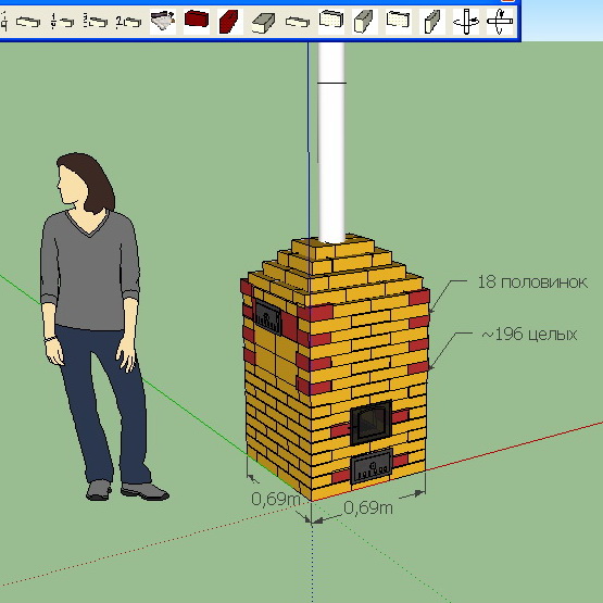 Размер сложенной без раствора печи 72см х 60см х 1,1м.
